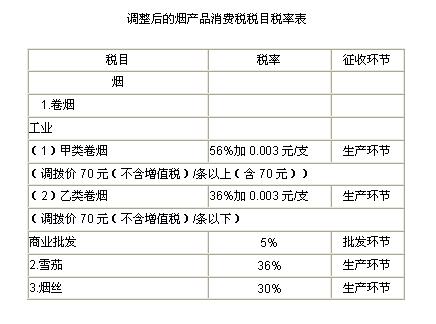 為了適當(dāng)增加財(cái)政收入,完善煙產(chǎn)品消費(fèi)稅制度,經(jīng)國(guó)務(wù)院批準(zhǔn),現(xiàn)將調(diào)整煙產(chǎn)品消費(fèi)稅政策問(wèn)題通知如下:
