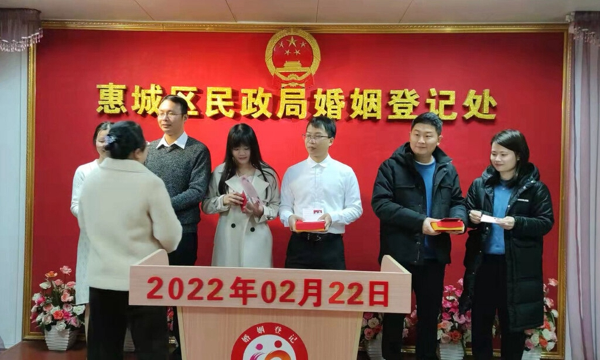 2022.2.22“最有愛”日子 惠州705對(duì)新人領(lǐng)證忙
