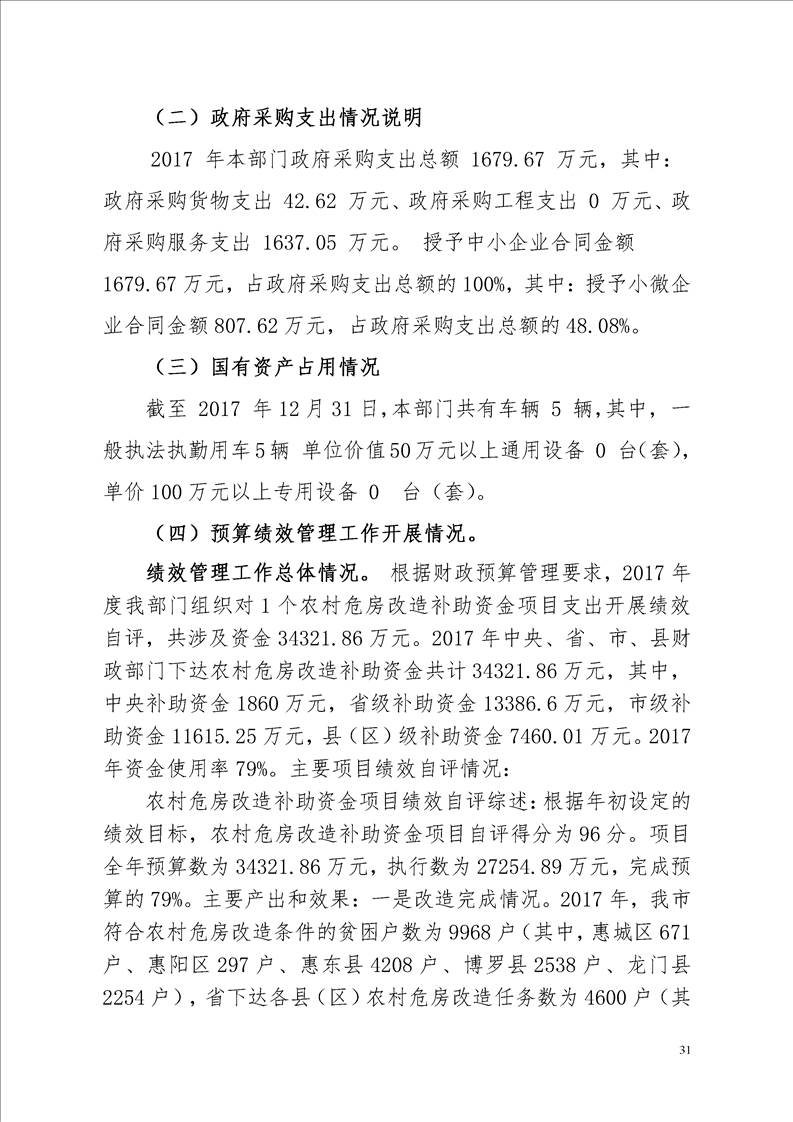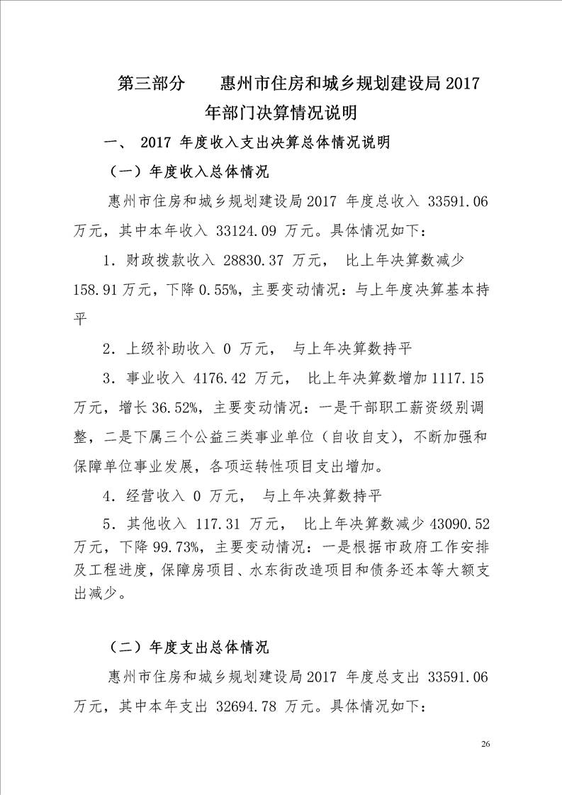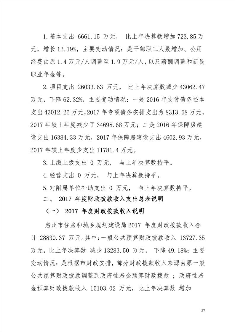 2017年度惠州市住房和城鄉(xiāng)規(guī)劃建設(shè)局部門決算公開情況說明
