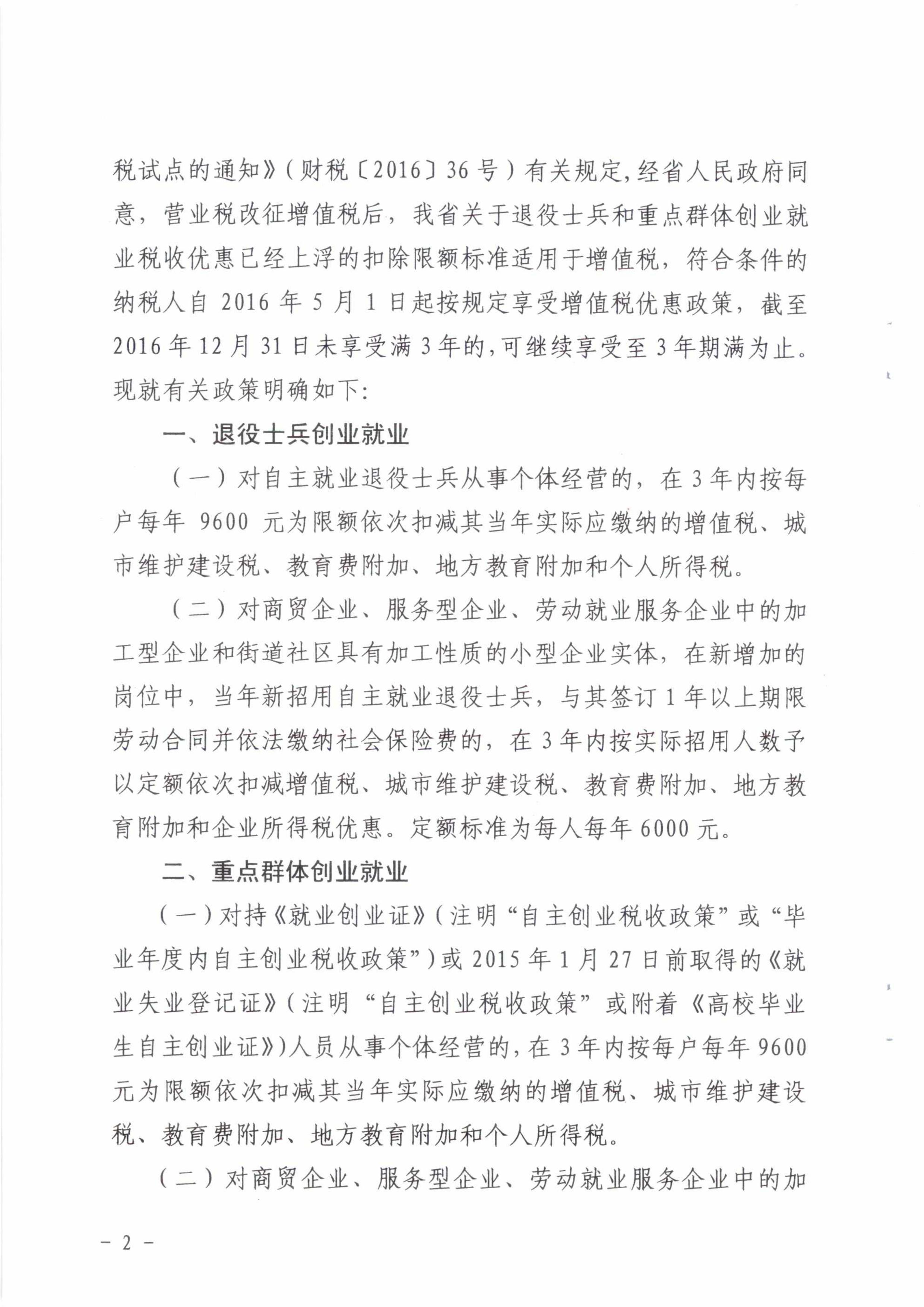 關于明確營業稅改征增值稅后退役士兵和重點群體創業就業稅收優惠政策的通知