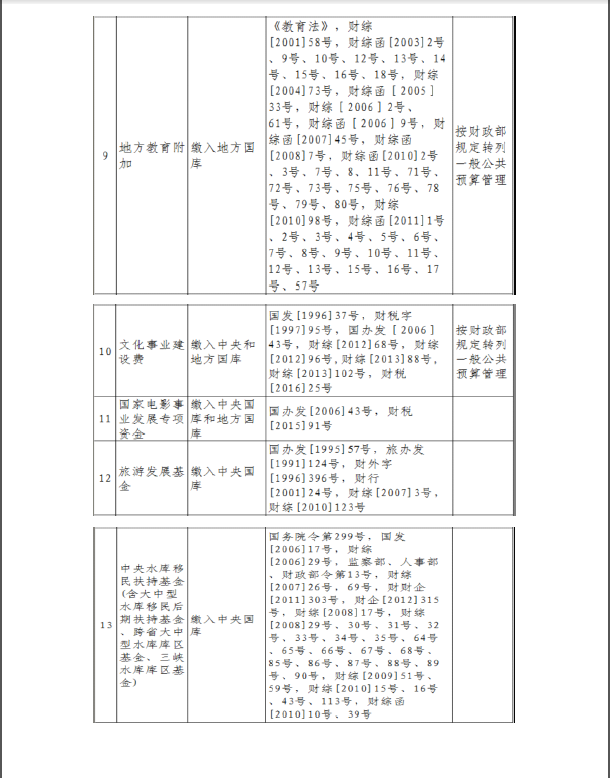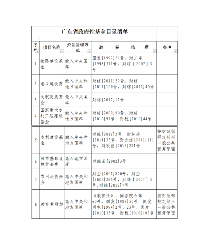 廣東省政府性基金目錄清單