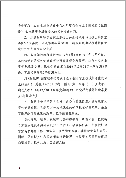 財(cái)政部 稅務(wù)總局 民政部關(guān)于繼續(xù)實(shí)施扶持自主就業(yè)退役士兵創(chuàng)業(yè)就業(yè)有關(guān)稅收政策的通知