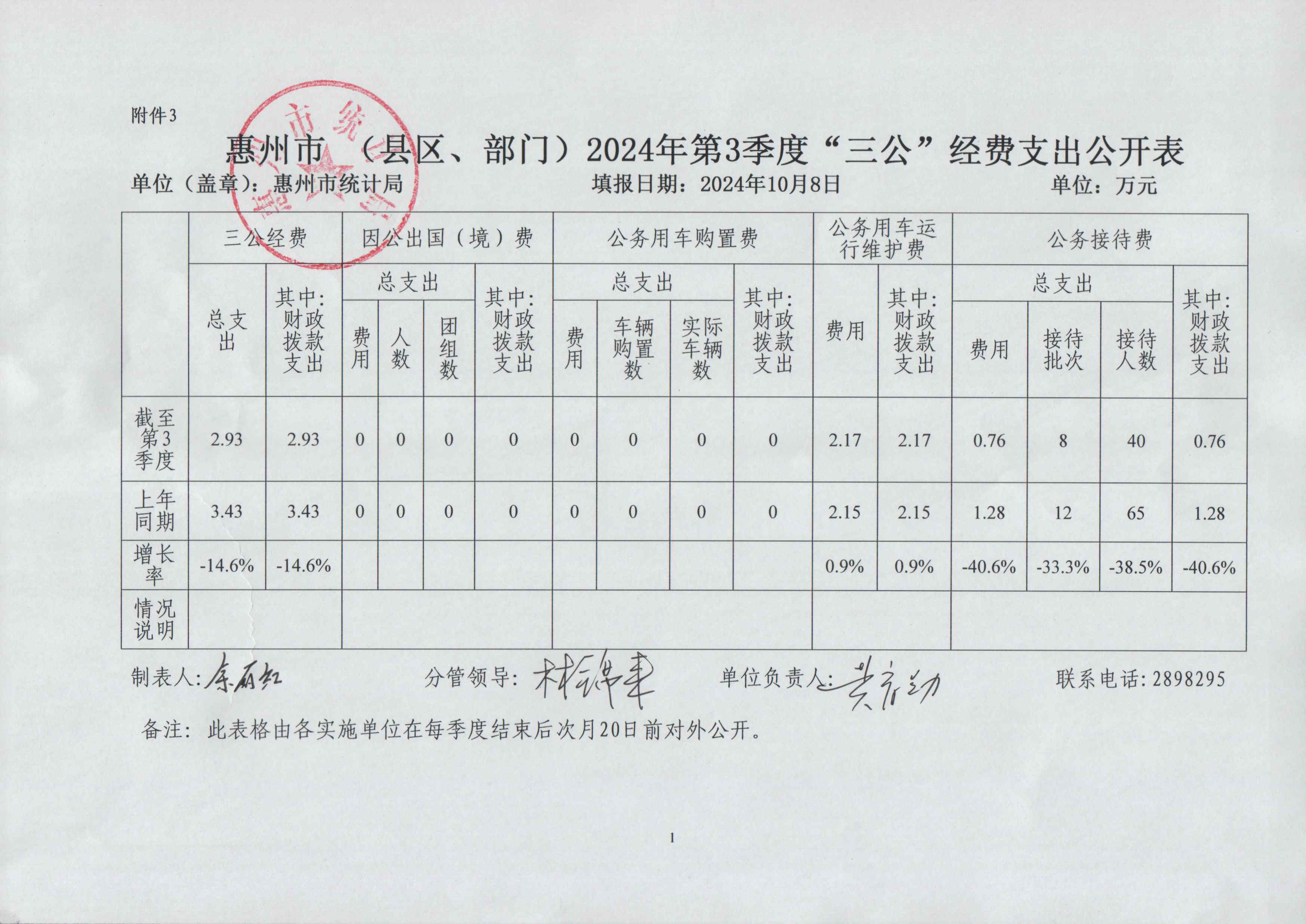 2024年第3季度“三公”經(jīng)費支出公開表