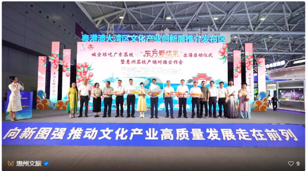 在開幕的文博會現場,還舉行了“喊全球吃廣東荔枝‘東方愛情果’出海啟動儀式暨惠州荔枝產銷對接合作會”,并發布惠州荔枝文旅線路,歡迎海內外客商到惠州考察創業,感受荔枝文化與惠州美景的完美融合。現場還有荔枝及其加工制品免費品鑒,從鮮嫩欲滴的荔枝鮮果到美味多樣的加工零食,滿足大家味蕾。