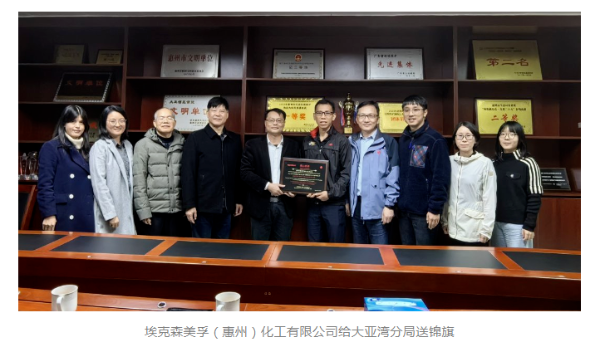 “高效優質項目服務,盡職擔當促企發展。”12月18日下午,埃克森美孚(惠州)化工有限公司代表陳偉軒經理及但鑫經理向惠州市生態環境局大亞灣分局(下稱“大亞灣分局”)贈送錦旗,對大亞灣分局在埃克森美孚惠州乙烯項目排污許可核發過程中急企業所急、解企業所困的高效服務表示衷心感謝。