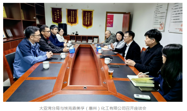 大亞灣分局局長黃海波收下了錦旗并與來訪代表進行了座談,感謝埃克森美孚(惠州)化工有限公司一直以來對生態環境保護工作的理解和支持,并就美孚公司系列項目推進情況進行了深入交流。