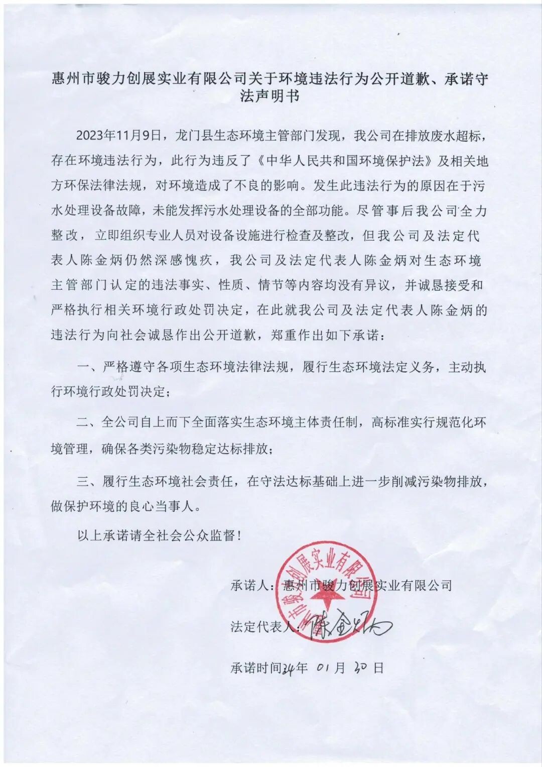 公開道歉并作出生態(tài)環(huán)境守法承諾