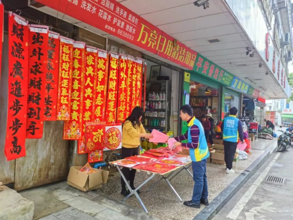 為貫徹落實《博羅縣人民政府關于禁止在縣城禁放區范圍內銷售和燃放煙花爆竹的通告》(博府〔2024〕4號)等文件精神,持續做好博羅縣春節及元宵節期間煙花爆竹燃放管控工作,減少環境空氣污染,1月31日,惠州市生態環境局博羅分局在博羅縣城北門路、下園路開展春節勿燃煙花爆竹宣傳活動。