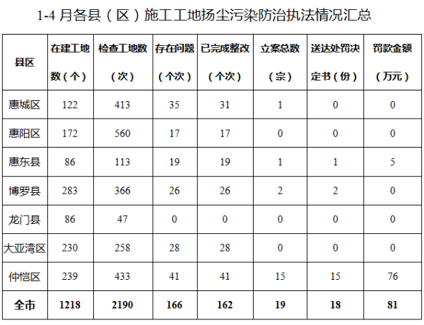 二、揚塵污染防治執法情況