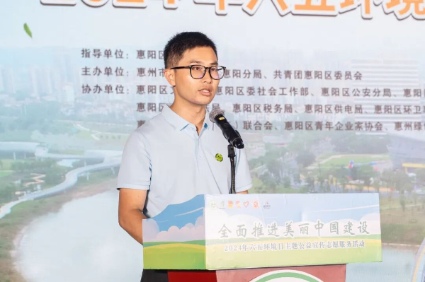 6月3日下午,惠州市生態環境局惠陽分局(以下簡稱“惠陽分局”)、共青團惠陽區委員會聯合14個區直相關單位、24個公益單位在惠陽市政廣場開展“全面推進美麗中國建設”2024年六五環境日公益宣傳志愿服務活動,號召廣大市民群眾積極參與生態文明建設與生態環境保護實踐,為推進美麗惠陽建設貢獻力量。惠陽區副區長陳偉、惠陽生態環境分局局長董斌、團區委副書記黎曉靜,區直相關單位及鎮街分管負責同志、企業代表和社會各界志愿團體代表等參加活動。