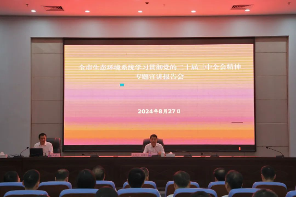 8月27日上午,市生態環境局召開全市生態環境系統學習貫徹黨的二十屆三中全會精神專題宣講報告會,邀請市委黨校常務副校長、市委宣講團成員李耀云同志作專題報告。會議由黃國超副局長主持,市局全體干部職工、退休黨員干部代表及縣(區)分局班子成員共160人參加會議。