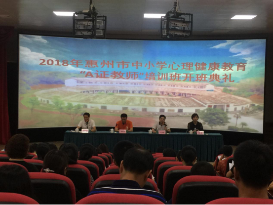7月23日,全市中小學心理健康教育“A證教師”培訓班在惠城區偉鴻中小學綜合實踐活動教育基地開班,華南師范大學心理學院副教授鐘明天博士及全市獲得“B證教師”崗位培訓證書且從事心理健康教育三年以上的專兼職教師和負責心理健康教育工作的行政領導共計130余人參加了開班儀式。