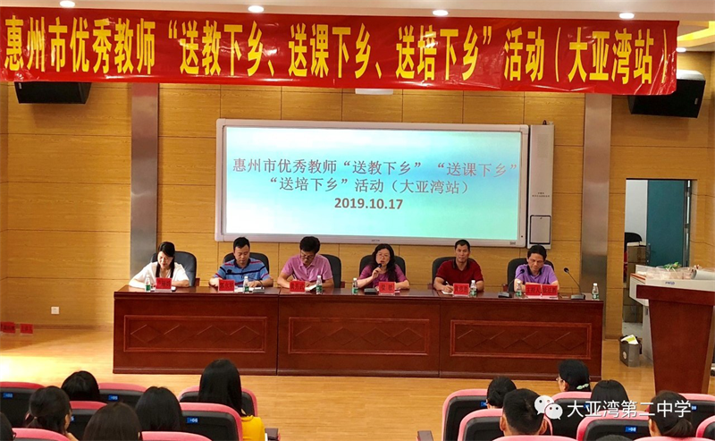 十月秋風意正濃,10月17日,惠州市優秀教師“送教下鄉、送課下鄉、送培下鄉”活動(大亞灣站)在大亞灣第二中學舉行。市教育局師訓科有關負責同志、市教科院生物教研員、大亞灣區宣教局教育科和教研室負責同志、大亞灣第二中學的領導及來自全市各中學共130余名初中生物科教師參加此次活動,本次活動分名師送課、課后研討和專題講座三個環節進行。