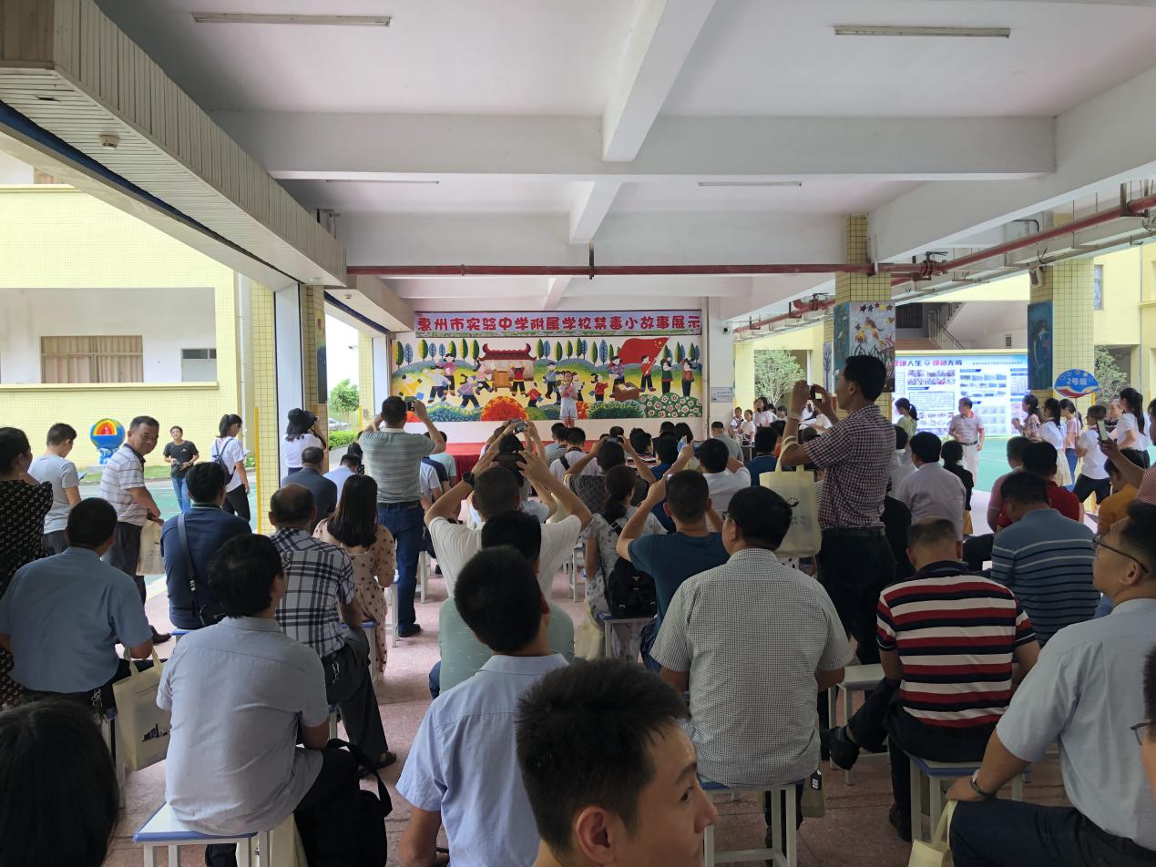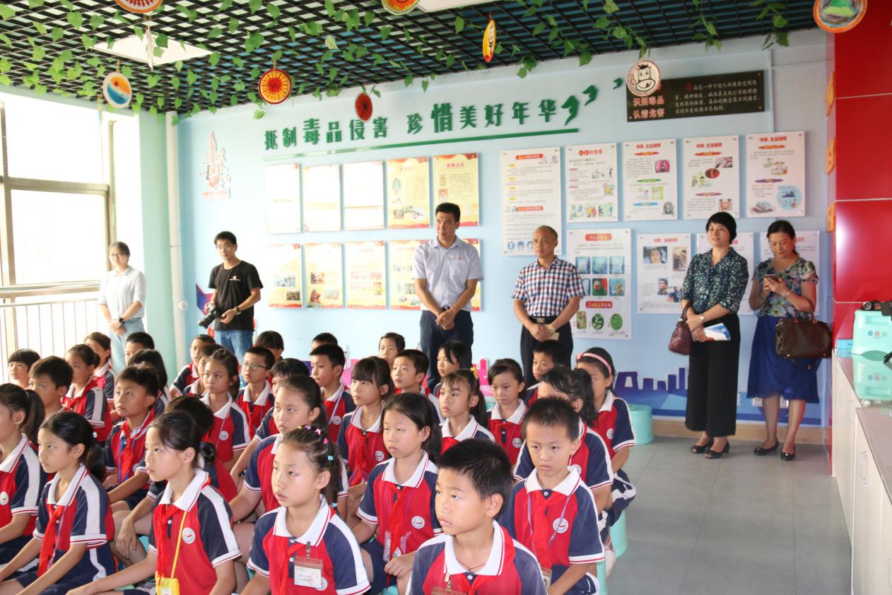與會人員現場觀摩市實驗中學附屬學校禁毒小故事展示