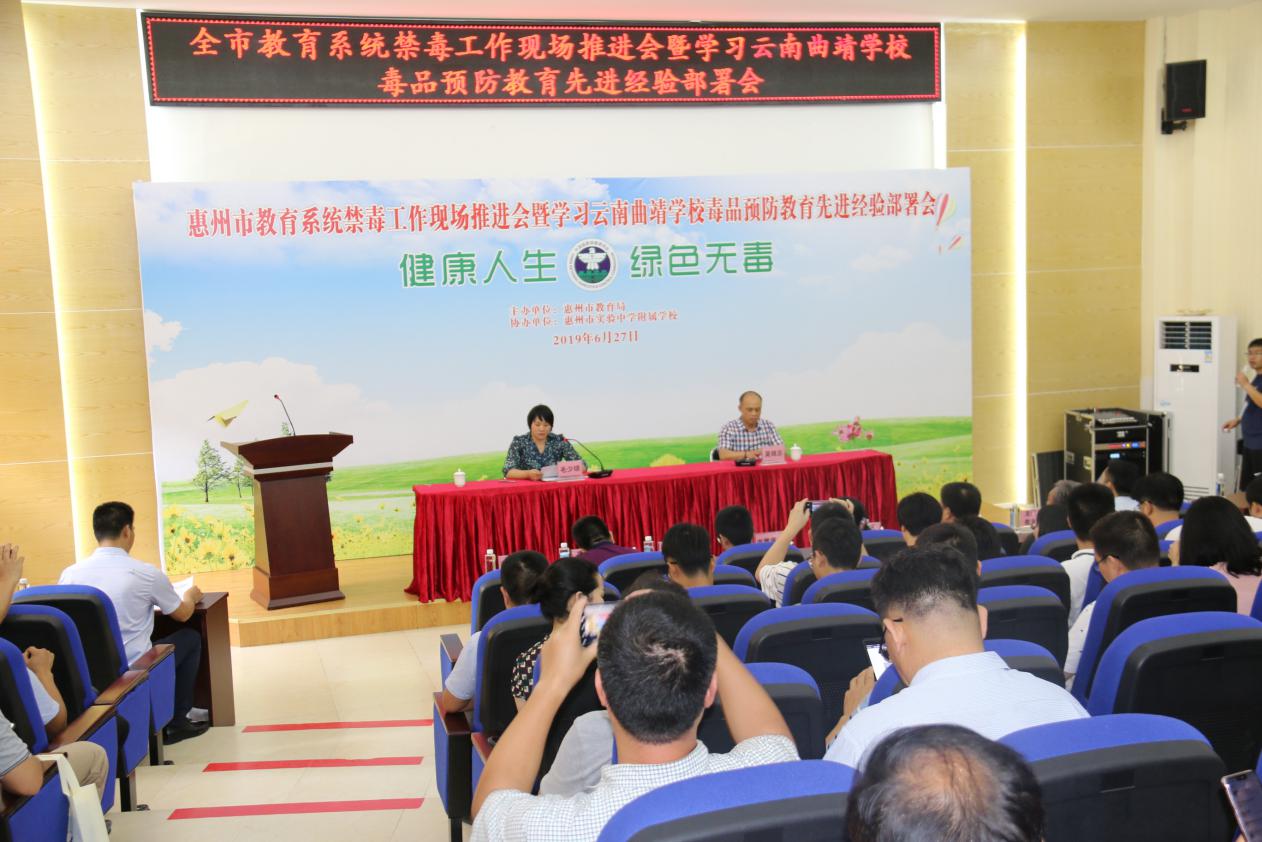6月27日,全市教育系統禁毒工作現場推進會暨學習云南曲靖學校毒品預防教育先進經驗部署會在市實驗中學附屬學校召開。市教育局黨組成員、副局長毛少瓊、市禁毒辦副主任莫錦志、市關工委副主任蔡耀及各縣(區)教育局分管領導、市直各學校分管副校長、各縣(區)第二、三批創建省級毒品預防教育示范校學校校長共計170余人參加了會議。