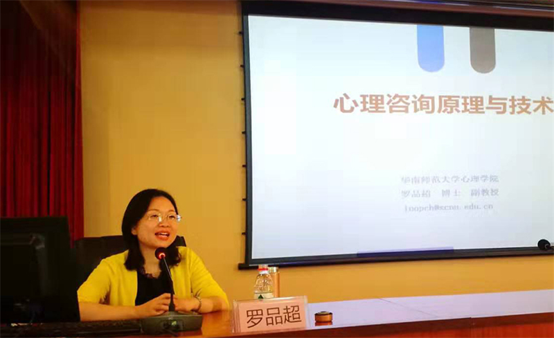 羅品超教授講【心理咨詢原理與會話技術(shù)】和【學(xué)生心理健康教育課程設(shè)計】專題講座。
