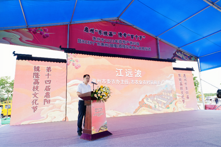 6月19日上午,惠州市2023年荔枝產(chǎn)銷對接暨RCEP廣東惠州(鎮(zhèn)?。├笾灰字行膯⒂脙x式在惠陽區(qū)鎮(zhèn)隆鎮(zhèn)荔枝文化廣場舉行。本次活動以“惠州‘東坡荔’情牽‘百千萬’”為主題,旨在貫徹落實(shí)省“百縣千鎮(zhèn)萬村高質(zhì)量發(fā)展工程”,擦亮惠州荔枝品牌,推動荔枝產(chǎn)業(yè)高質(zhì)量發(fā)展。廣東省農(nóng)業(yè)農(nóng)村廳總經(jīng)濟(jì)師羅一心等有關(guān)領(lǐng)導(dǎo)出席活動,惠州市委農(nóng)辦主任、市農(nóng)業(yè)農(nóng)村局局長江遠(yuǎn)波發(fā)表致辭。