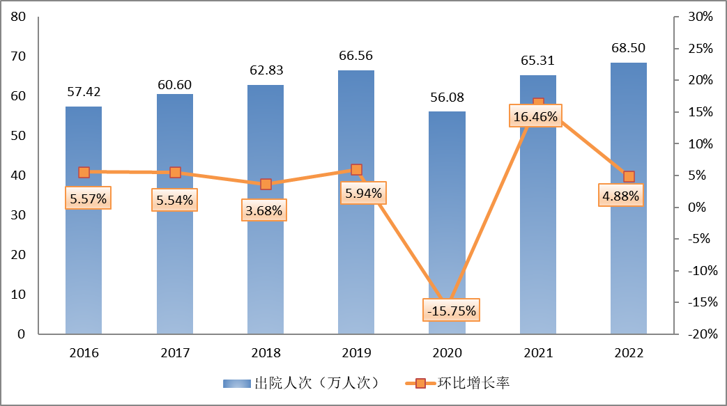 2016-2022年全市醫療機構住院量