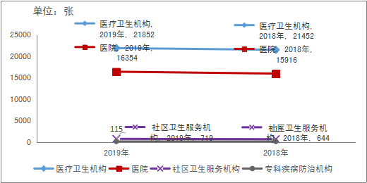 | 醫(yī)院 | 16354 | 15916 | 婦幼保健院 | 1333 | 1315 | 專科疾病防治機構(gòu) | 254 | 224 | 衛(wèi)生院 | 3192 | 3341 | 社區(qū)衛(wèi)生服務(wù)機構(gòu) | 719 | 644 |