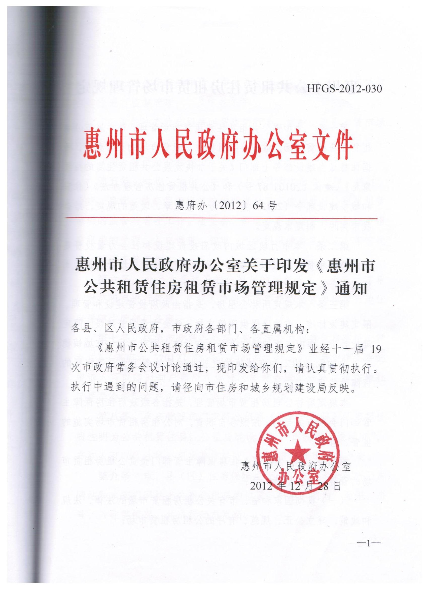 惠州市公共租賃住房租賃市場管理規定