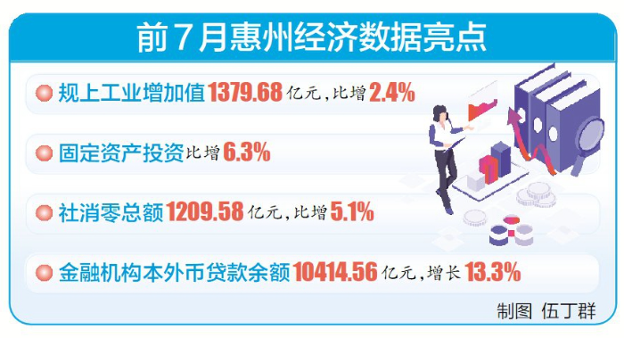 面對復(fù)雜嚴(yán)峻的外部環(huán)境,“萬億工業(yè)大市”惠州深入實施制造業(yè)當(dāng)家戰(zhàn)略,穩(wěn)中求進,今年1~7月,規(guī)上工業(yè)增加值1379.68億元,同比增長2.4%;固定資產(chǎn)投資同比增長6.3%;社消零總額1209.58億元,同比增長5.1%;金融機構(gòu)本外幣貸款余額10414.56億元,增長13.3%。惠州全市經(jīng)濟運行整體回升向好,尤其是工業(yè)經(jīng)濟,穩(wěn)住了增長態(tài)勢,提升了質(zhì)量,展現(xiàn)出強大的韌性和活力。