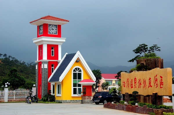惠州海濱溫泉旅游度假區  位于惠東縣平海半島鷓鴣洞,東靠紅海灣、南門灣,西依巽寮灣、雙月灣,中國大陸唯一海龜自然保護區近在咫尺,是按國家4A景區標準設計與建設的高檔休閑度假勝地,客房全部按五星級標準裝修。首期投入使用各種特色豪華客房262間,有歐洲風格半山豪苑、海濱小筑;有中式結構溫泉賓館、"稻鄉村"青年旅館等。海濱溫泉源自深海底層地熱之水,透明度好,含氡、硫酸鹽、鈣、鎂、鉀、鈉、鐵等40多種有益人體健康的礦物質元素,水溫高達70℃,日涌量4000立方米。