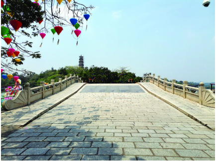 保寧橋位于博羅縣城西隅觀背村,又名觀前橋。該橋?yàn)槎资皹?兩孔之間置菱形分水尖,橋身為紅砂巖鋪筑,呈弧形,南北長31.4米,東西寬4.5米,高7米。橋拱呈半月形,外形顯得古樸、堅(jiān)固、壯觀。