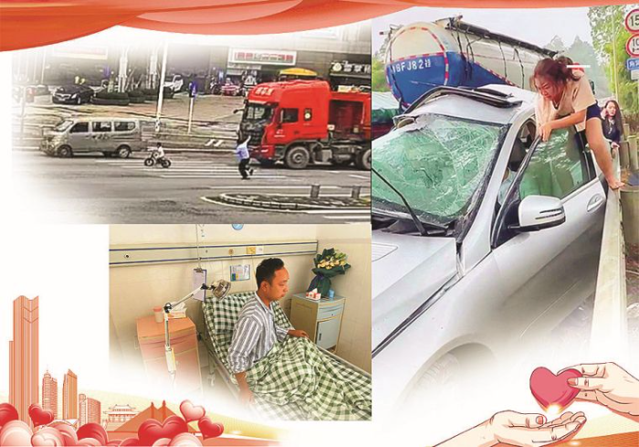左上:車流中救下男童的“輔警哥”曾勇軍。 左下:擋刀救人的快遞小哥黎志偉。 右:車禍現場奮勇救人的“女俠”溫偉蓮。 惠州東江圖片社供圖