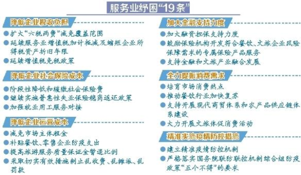 服務業一頭連著經濟發展,一頭連著民生福祉。當前,疫情防控形勢依然復雜嚴峻,服務業行業由于集聚性、接觸性的特點,受到較大沖擊。“若干措施”共推出降低企業稅收負擔、降低企業社會保險成本、降低企業運營成本、加大金融支持力度、全力提振消費需求、精準實施疫情防控措施等6個方面共19條措施。