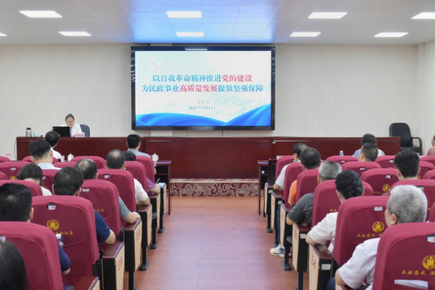 為深入學習貫徹習近平總書記關于黨的建設的重要思想、關于黨的自我革命的重要思想,推動以案促改促治,推進作風建設常態化長效化,9月12日上午,惠州市民政局開展專題黨課。市民政局黨組書記、局長吳素青以“以自我革命精神推進黨的建設 為民政事業高質量發展提供堅強保障”為題,為廣大黨員干部講授專題黨課。市民政局退休老干部、“全國一級戰斗英雄”周元生分享受邀參加九三閱兵觀禮體會。市民政局班子成員、調研員職級領導干部,局機關全體干部職工,各直屬單位班子成員,市殯儀館全體黨員,市民政局老干黨支部黨員,部分社會組織黨組織代表等約130人參加專題黨課。專題黨課由市民政局黨組成員、副局長閆維主持。