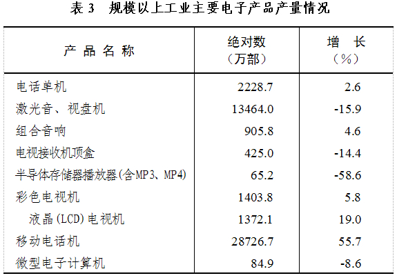 從限額以上批發和零售業商品零售額看,食品、飲料、煙酒類增長21.5%,服裝、鞋帽針紡織品類增長10.8%,化妝品類增長0.1%,金銀珠寶類增長47.7%,日用品類增長11.3%,體育、娛樂用品類增長6.6%,書報雜志類增長23.2%,家用電器和音像器材類增長13.2%,中西藥品類增長68.2%,文化辦公用品類增長18.9%,通訊器材類增長14.5%,石油及制品類增長14.2%,汽車類增長27.3%,建筑及裝潢材料類增長389.9%。