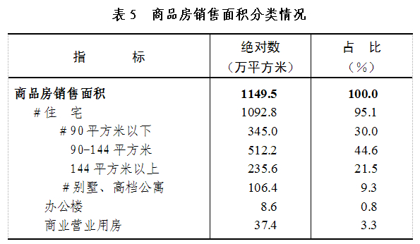 全年房地產開發投資593.5億元,增長23.1%;商品房建筑面積5810.7萬平方米,增長26.9%;商品房竣工面積634.8萬平方米,增長24.7%;商品房銷售面積1149.5萬平方米,增長39.0%;商品房銷售金額672.1億元,增長40.5%。