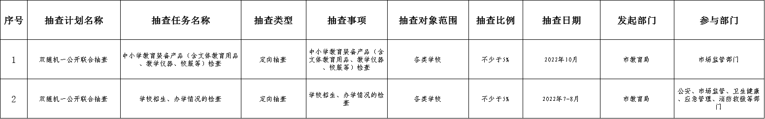 惠州市教育局2022年度市場(chǎng)監(jiān)管領(lǐng)域部門聯(lián)合雙隨機(jī)抽查工作計(jì)劃