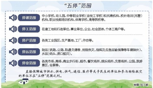 當市、縣(區)人民政府或其三防指揮機構暫未發布“五停令”時,各級行業主管部門應根據氣象部門發布的臺風暴雨預警信號負責本行業“五停”措施落實。