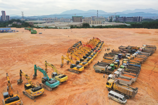 粵港澳大灣區(惠州)數據產業園內大型機械設備已進場施工。記者王建橋 攝